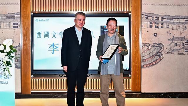 浙江出版联合集团董事长、党委书记程为民为李敬泽颁发西湖文学院召集人聘书