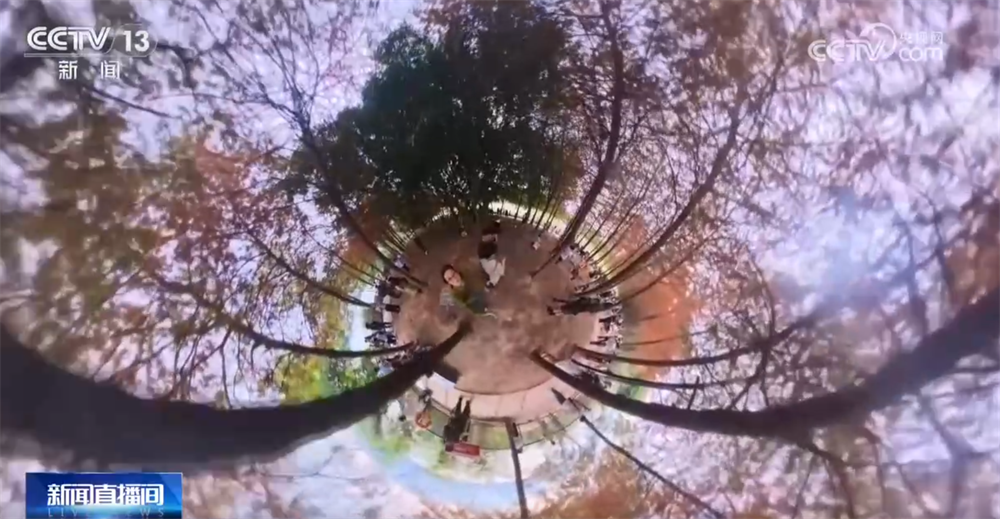 现在记者手上拿的就是一个360度的全景相机,它可以同时拍摄到周围所有角度的画面,呈现出一个像地球仪一样的效果,是不是很有意思呢?现在很多的摄影爱好者也会用它来拍摄秋日旅拍,把江水、红叶、蓝天尽收眼底,既好玩又出片。