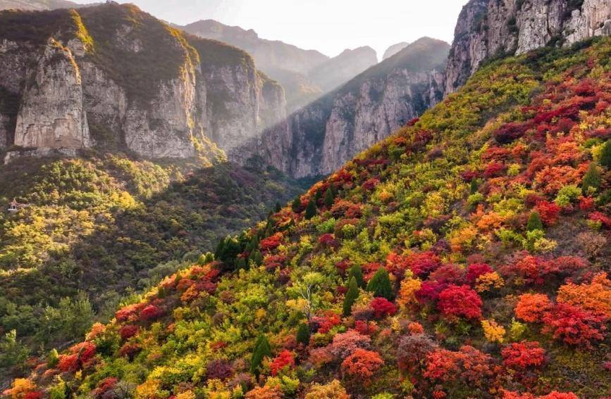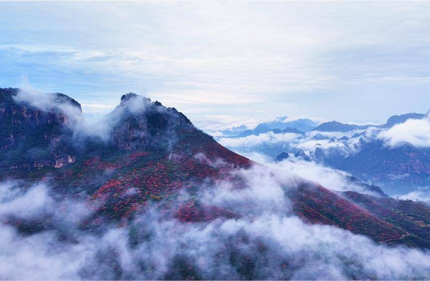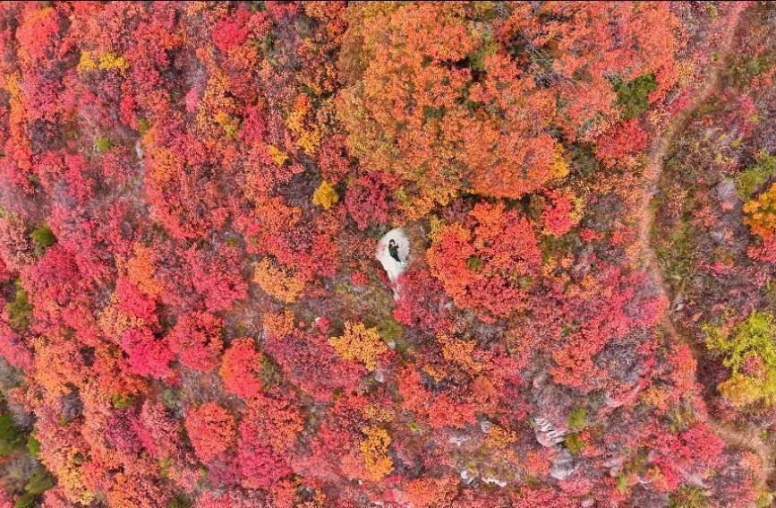河北省邯郸市涉县太行五指山红叶(无人机航拍)。涉县太行五指山景区供图