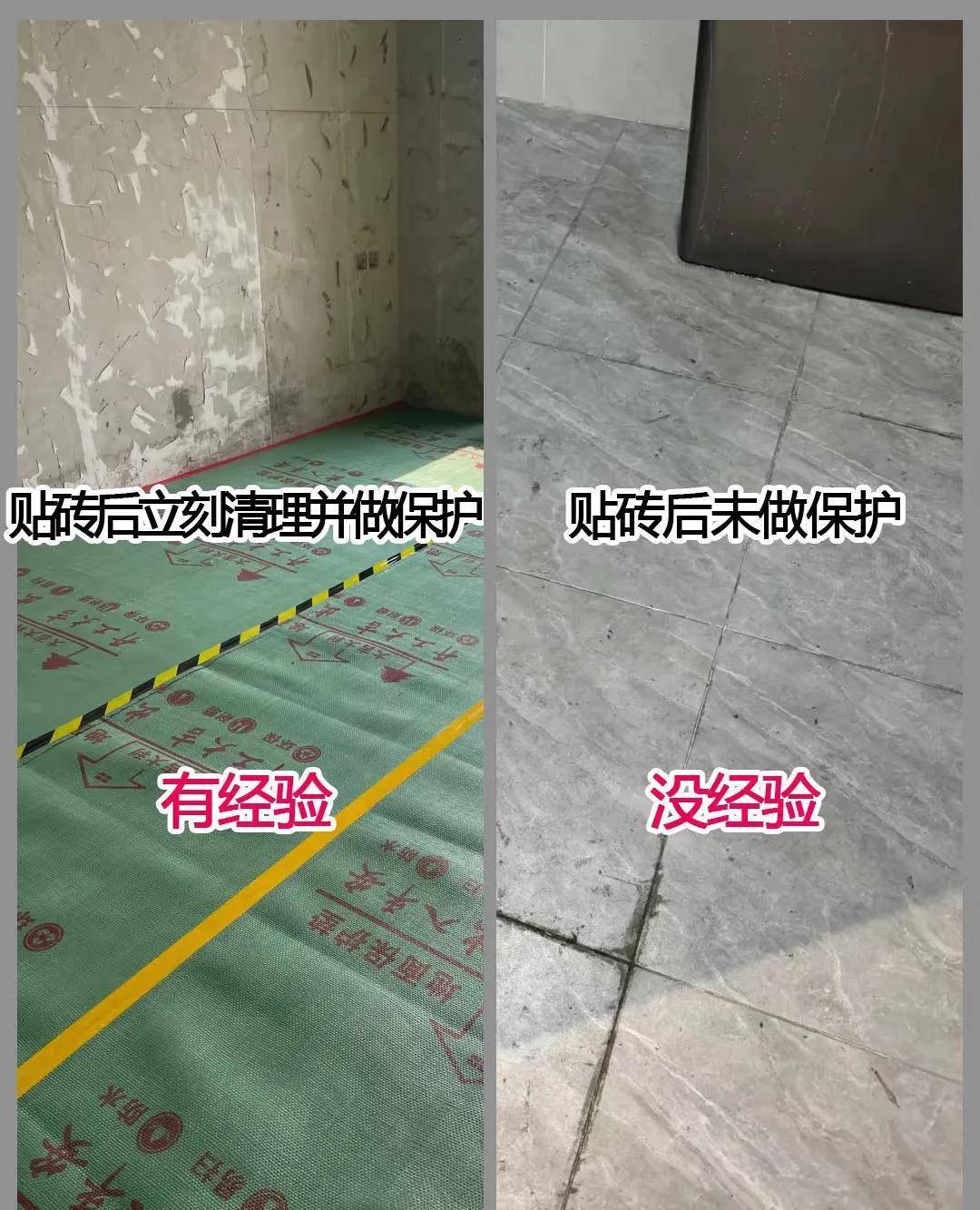 ✖️ 没经验:水泥干透才清理?扣到掉瓷都弄不干净,直接毁砖!
