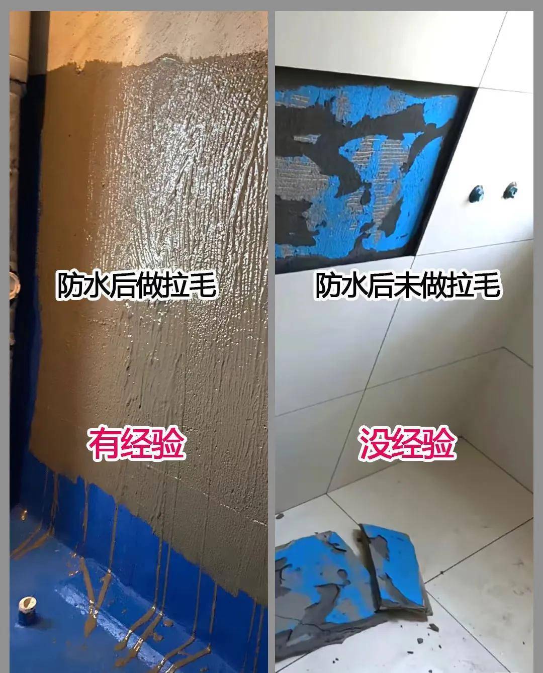 ✖️ 没经验:防水层光溜溜,瓷砖内心OS:我待不下去了!“空鼓脱落”预警!