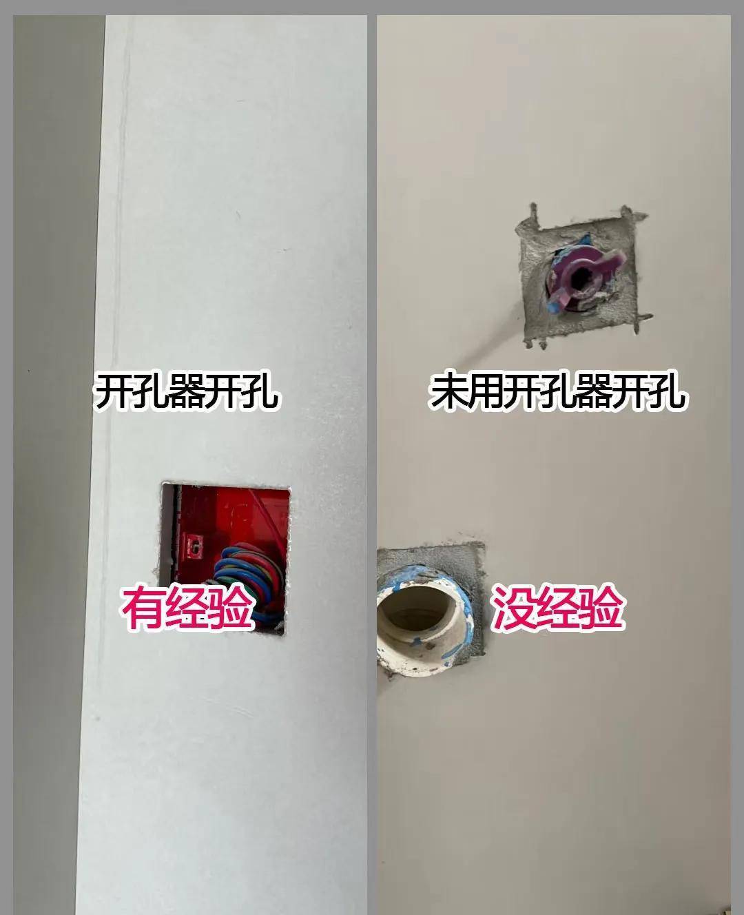 ✖️ 没经验:暴力施工,边缘像狗啃,丑哭还伤墙体。